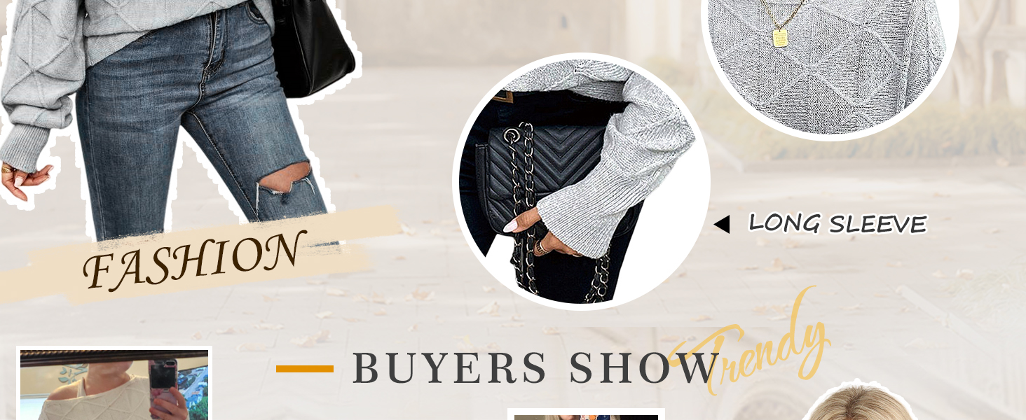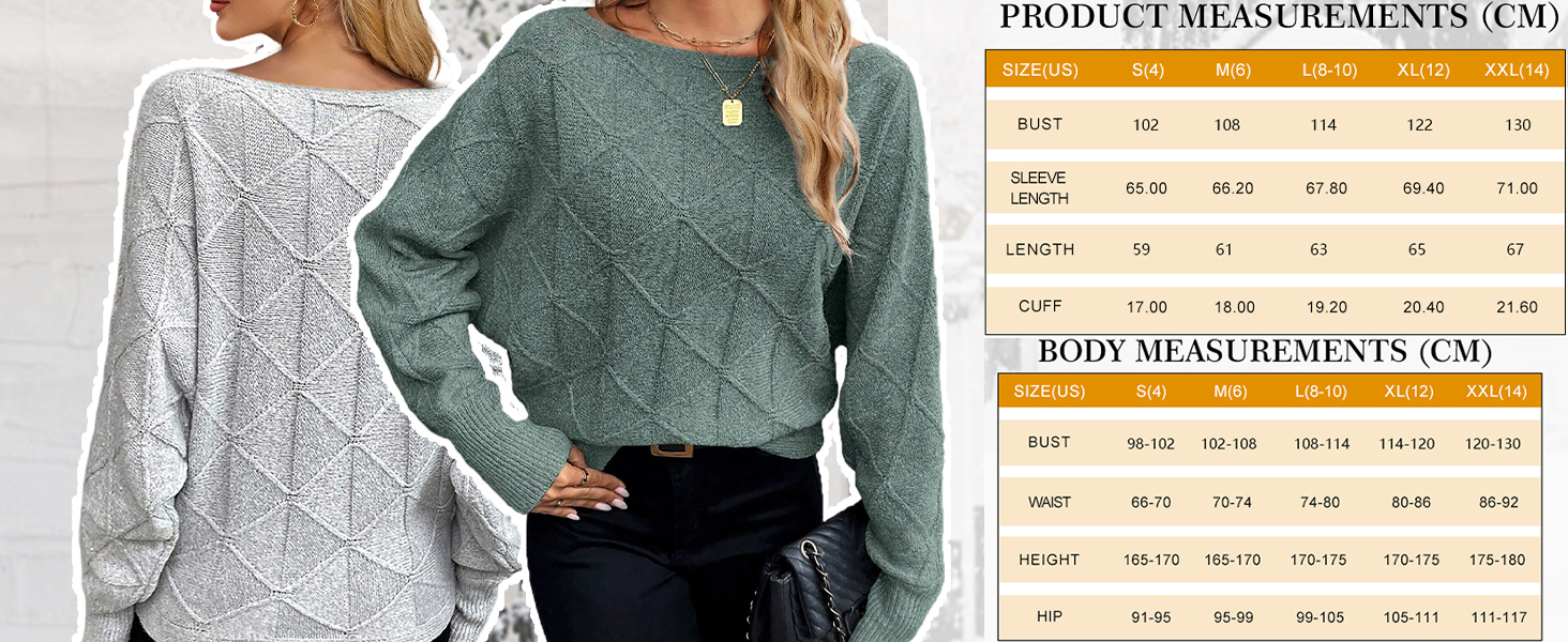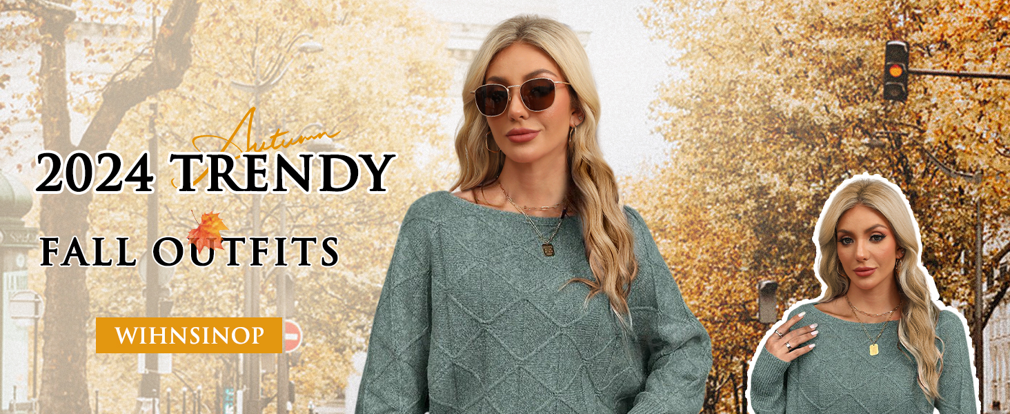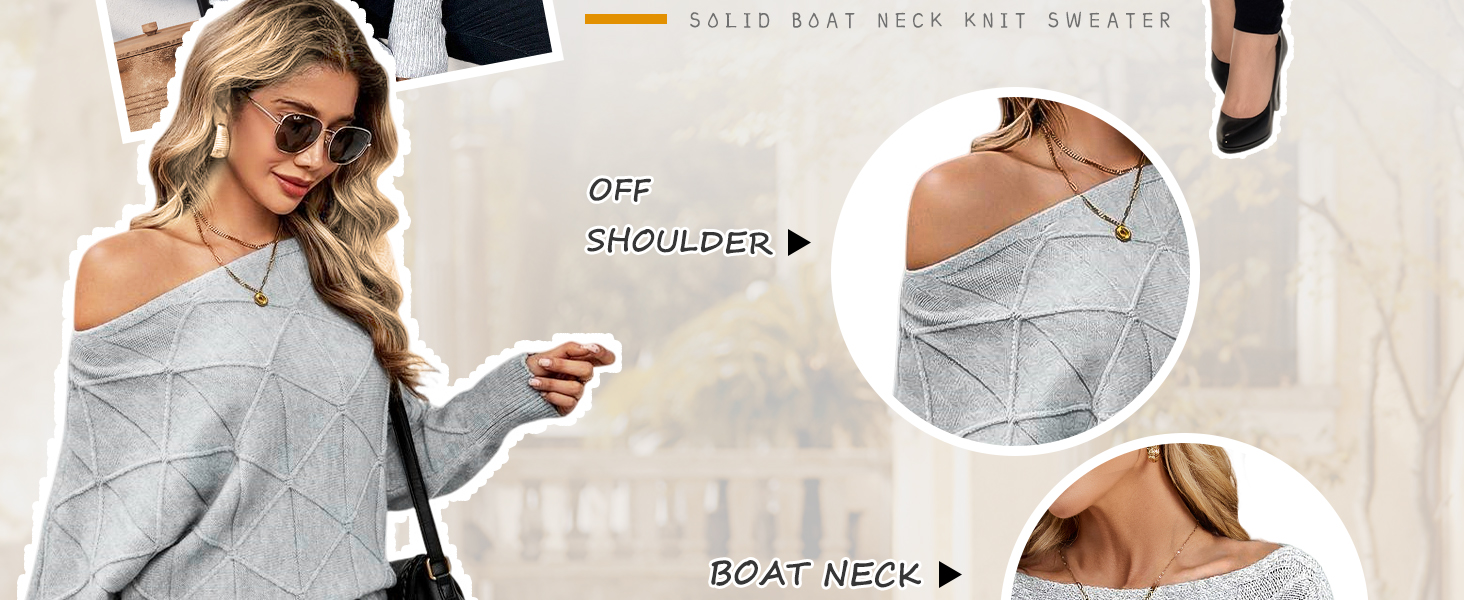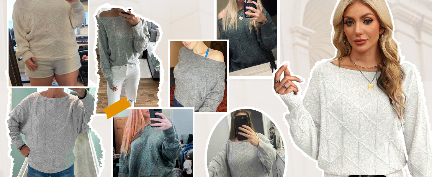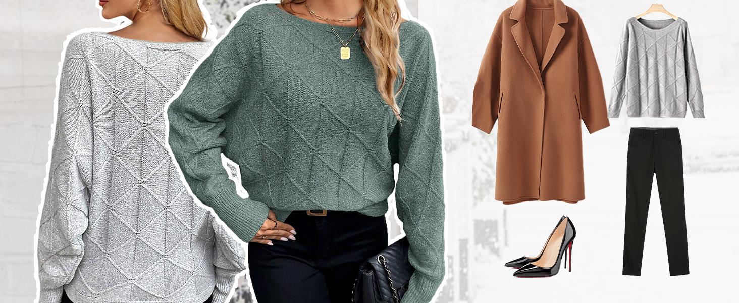 - Feature: This 2024 trendy fall sweaters for women features off the shoulder, boat neck, long batwing sleeves, lozenge textured, knit, loose fit, lightweight, slouchy baggy style, ribbed hem. You’ll be sure to get compliments on this fashion knit outfits